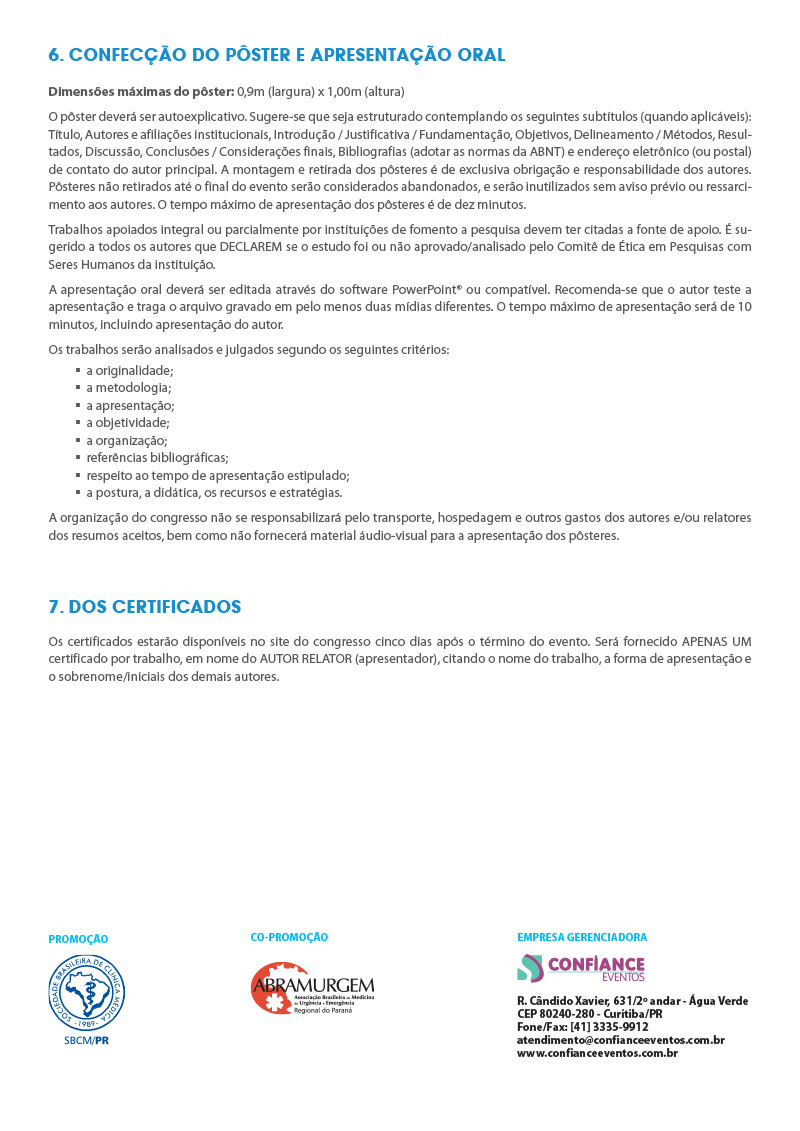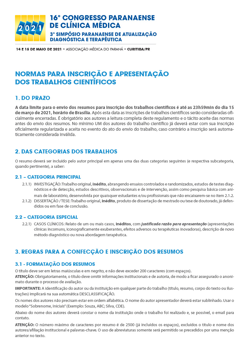 Normas para inscrição e apresentação dos trabalhos científicos